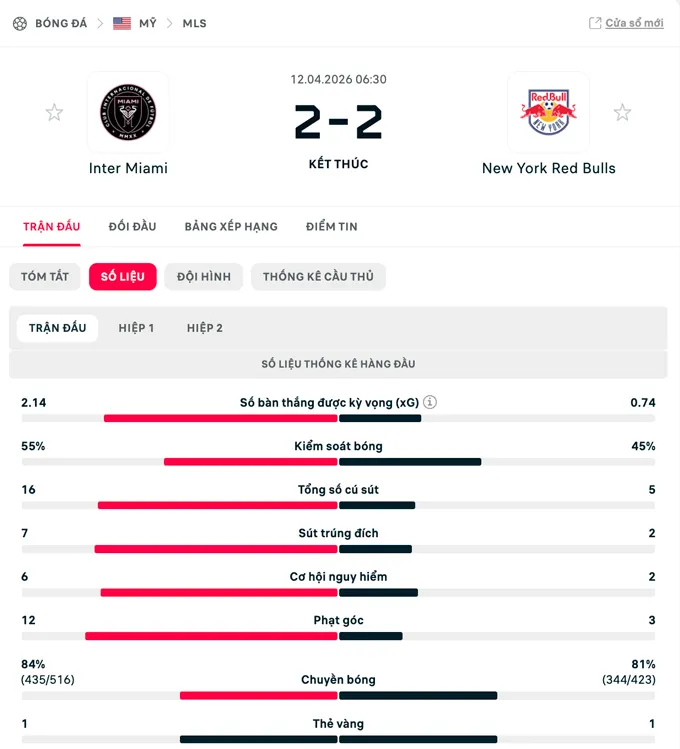 Tuy nhiên, vấn đề nan giải của Inter Miami lại bộc lộ. Dù có tới gần 20 cú dứt điểm, hiệu suất chuyển hóa cơ hội thành bàn thắng lại quá thấp. Sự lãng phí này đã khiến họ phải trả giá đắt.