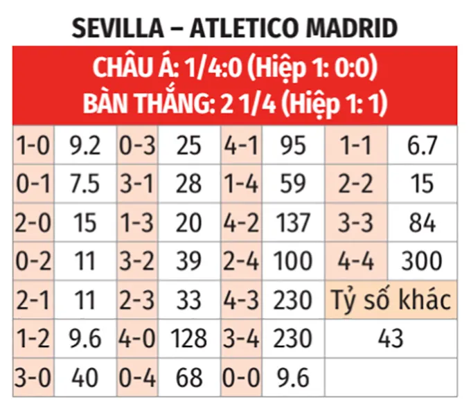 Các chuyên gia nhận định, Atletico dù có thể không ra sân với đội hình tối ưu nhưng vẫn đủ chất lượng để tránh thua. Trong khi đó, Sevilla với lợi thế sân nhà và sự quyết tâm cao độ hoàn toàn có cơ hội kiếm về một điểm quan trọng.